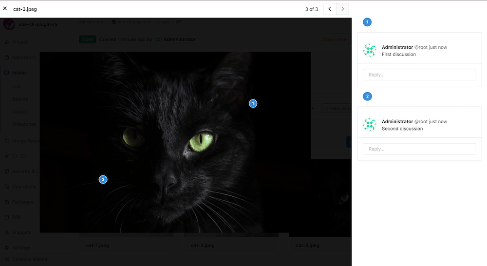 We support referring to designs in Markdown, which is available throughout the application, including in merge request and issue descriptions, in discussions and comments, and in wiki pages.